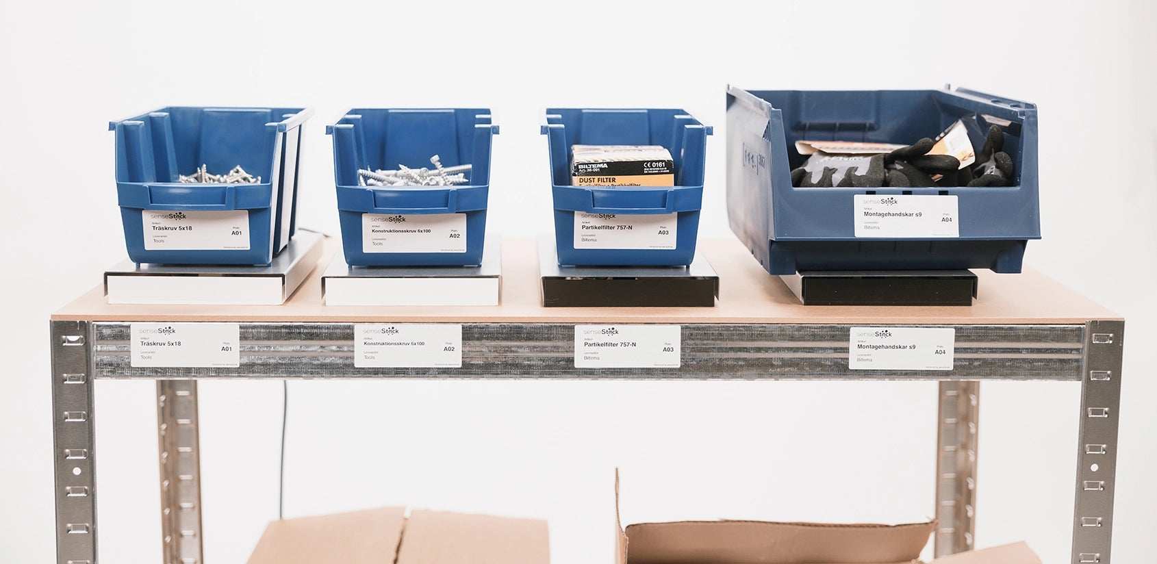 Våra vågelement väger det som står på platsen och kan på så sätt veta hur många som finns där. När man sätter upp en lagerplats så väger man ett antal av den artikeln som skall ligga där samt även vad eventuell back eller emballage väger. Detta anges lätt i systemet och översätts i din vy till antal artiklar på platsen. I vårt system sätter ni sedan orderpunkt och larmpunkt på varje plats. Ni kan enkelt se vilka artiklar som behöver beställas i vårt webgränsnitt eller använda Elly till att sammanställa mail till er en eller flera gånger i veckan.